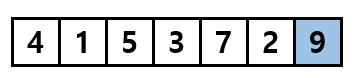 이 행위가 리스트의 가장 끝까지 진행이 되었다면 한 cycle 동안 진행 된 것으로 보고 이때 리스트의 가장 마지막 위치에 들어있는 값은 리스트의 모든 데이터 중에서 가장 큰 값이 되는 것을 볼 수 있습니다.