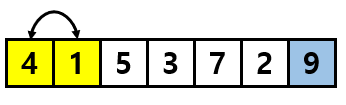 두 값이 정렬되어 있지 않다면(즉, 왼쪽 값 > 오른쪽 값이면) 두 element의 위치를 교환한다.