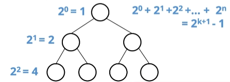 높이가 h일 때 노드 갯수는 2k+1 - 1 개를 가진다는 특징있습니다. 이 때, Leaf 노드의 갯수는 2h 개가 됩니다.