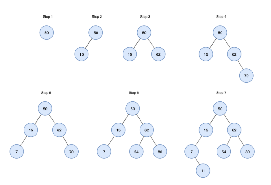 - 노드의 왼쪽 자식은 부모의 값보다 항상 작은 값을 가져야 하고 노드의 오른쪽 자식은 부모의 값보다 항상 큰 값을 가져야 한다는 규칙이 존재합니다.