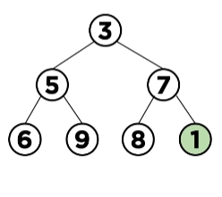 Min heap에 데이터 '1' 삽입하기