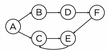 - 그래프 내 cycle이 존재하는경우 (C <-> E)