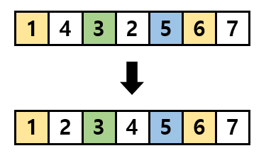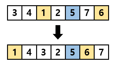 2. 그렇게 해서 이 pivot값을 기준으로 원소들을 재배치한다.